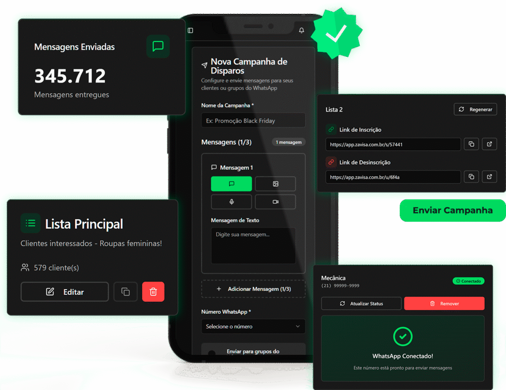 Envie mensagens para seus clientes ou contatos de forma recorrente, agendada ou enviadas em massa!